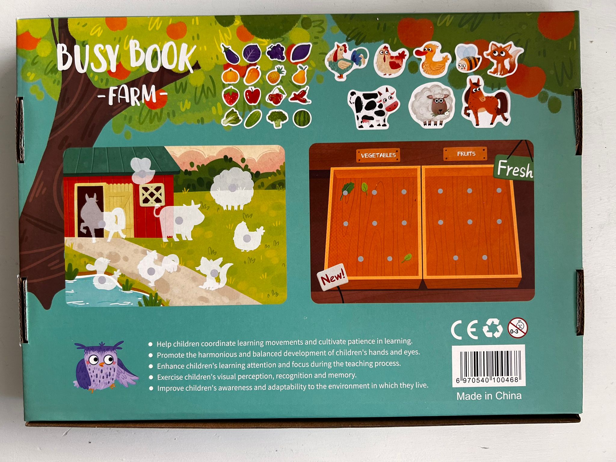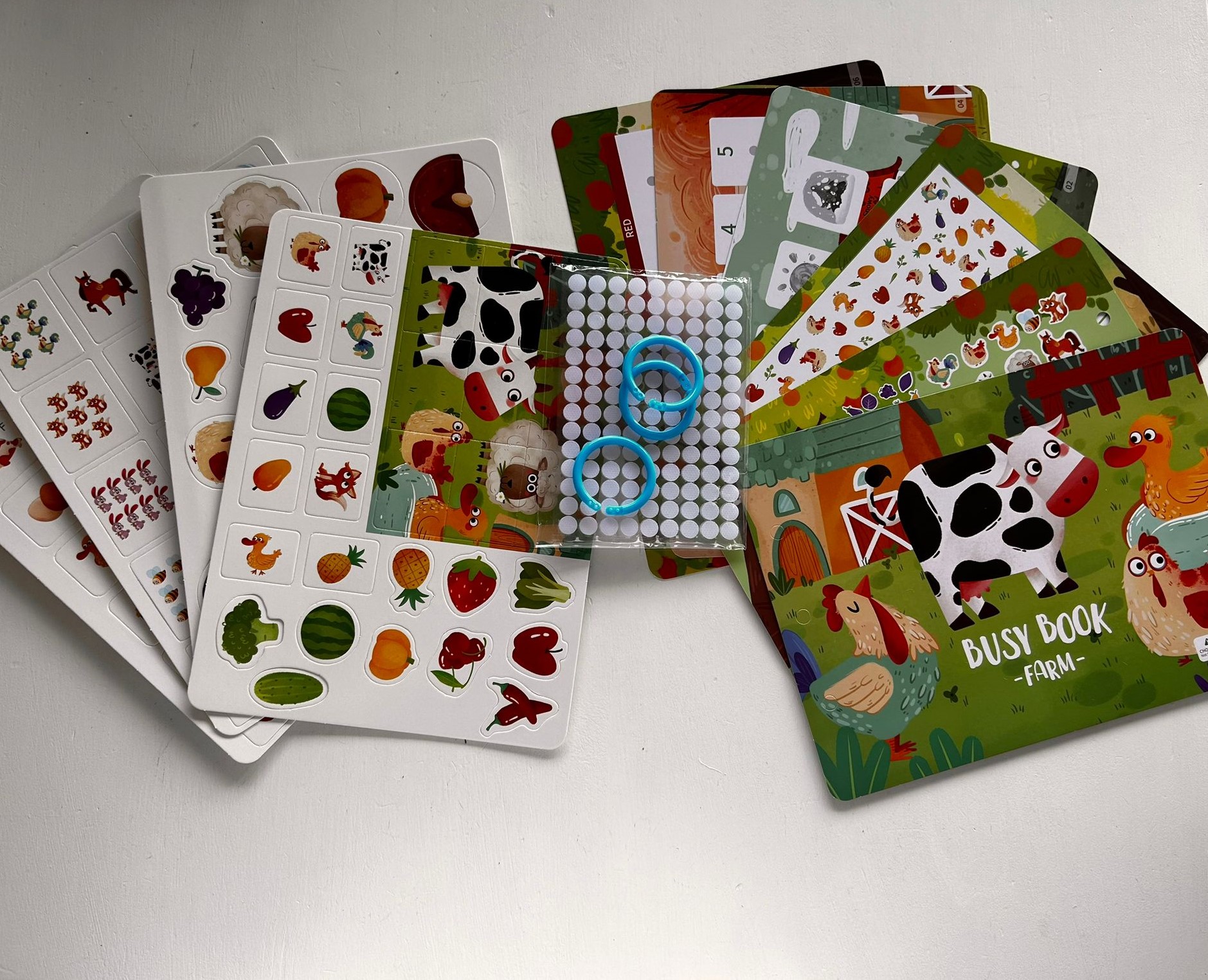 Taaskasutatavad takjakinnitusega pildid võimaldavad lapsel kujundada oma farmi.