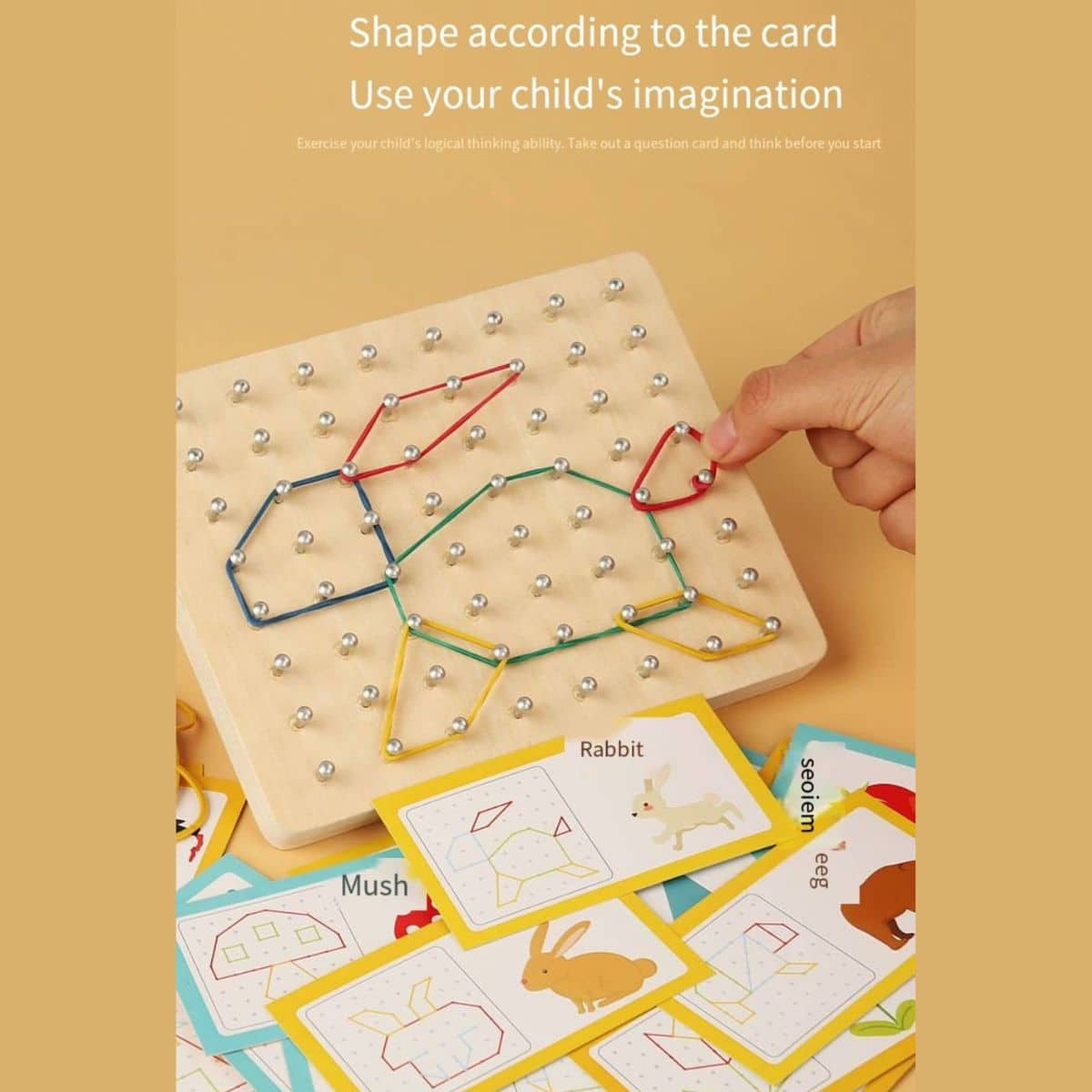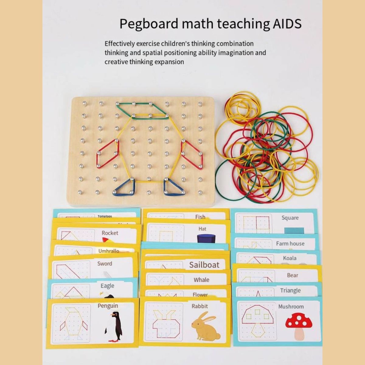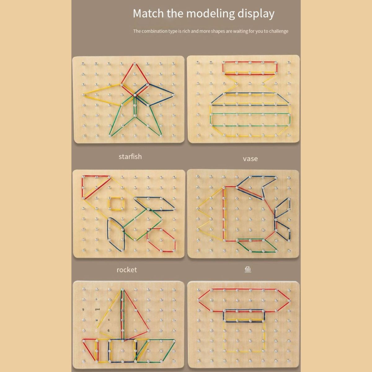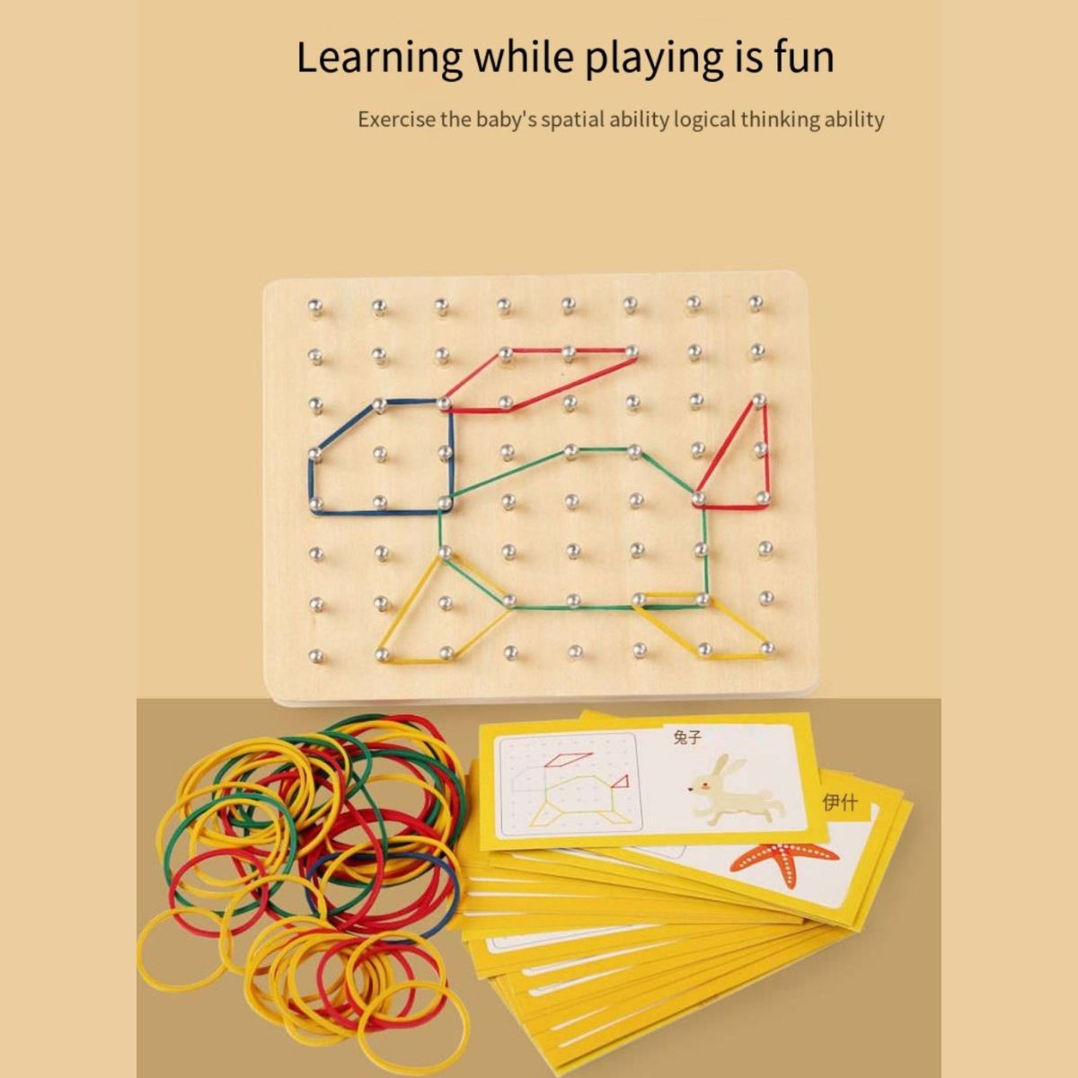 Kas otsid mänguasja, mis ühendab õppimise ja lõbu? Puidust hariv geomeetriline naelalaud on suurepärane vahend, mis aitab lastel arendada käelisi oskusi, loogilist mõtlemist ja kujutlusvõimet. Kasutades värvilisi kummipaelu ja 30 kahepoolselt illustreeritud kaarti, saavad lapsed luua erinevaid geomeetrilisi kujundeid ja mustreid, õppides samal ajal ruumilist mõtlemist ja peenmotoorikat.