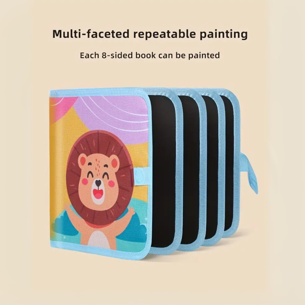 Taaskasutatav kleepsuraamat – veekindlad kleepsud loomade, kujundite ja looduse teemadel, mis arendab käelisi oskusi, keskendumisvõimet ning kujundab arusaamist erinevatest teemadest ja mustritest.
