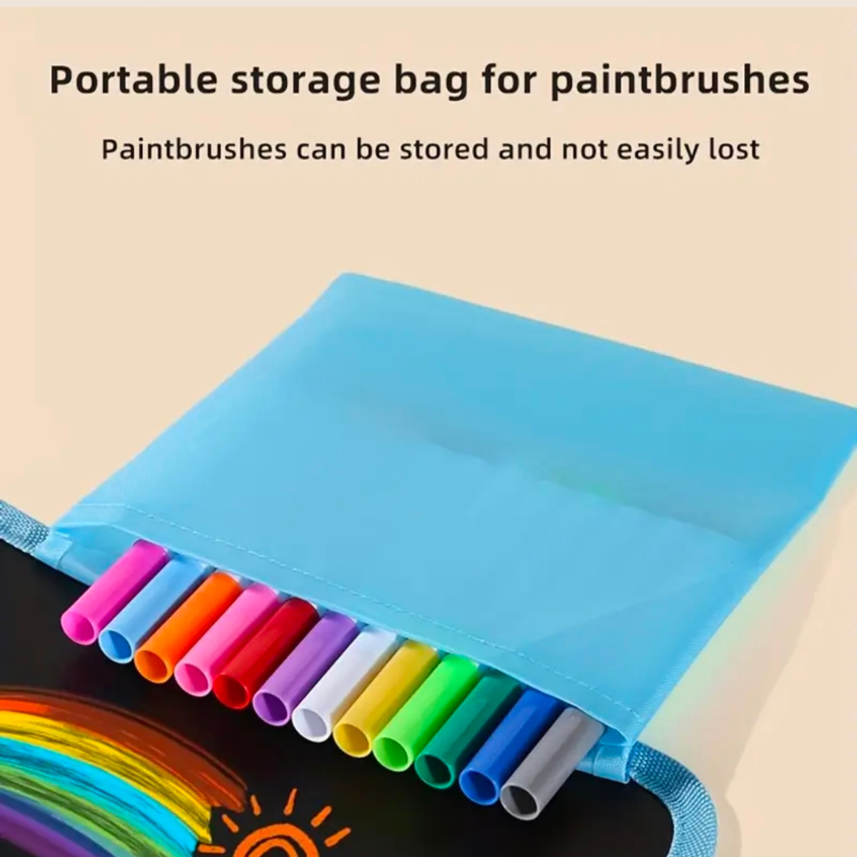 Laps saab ise valida, millise mänguga alustada – olgu see kleepsude paigutamine, veega värvimine või magnettahvlil joonistamine. Mängu lõpetamisel on kõik vahendid lihtne hoiukotti tagasi panna.