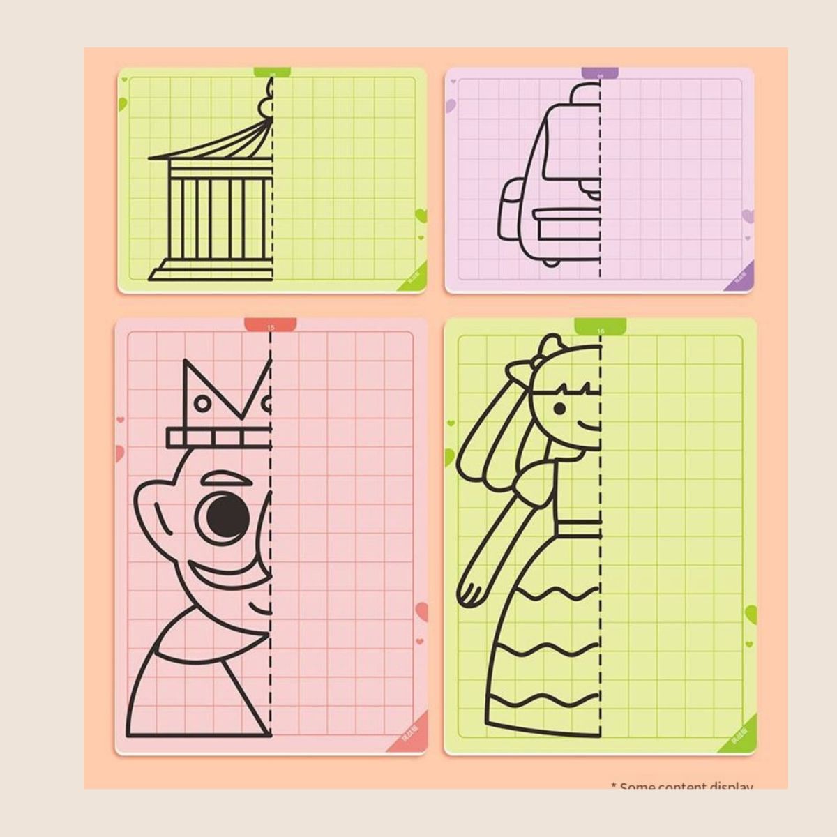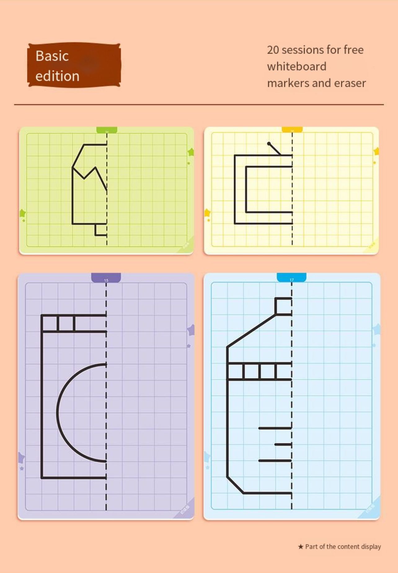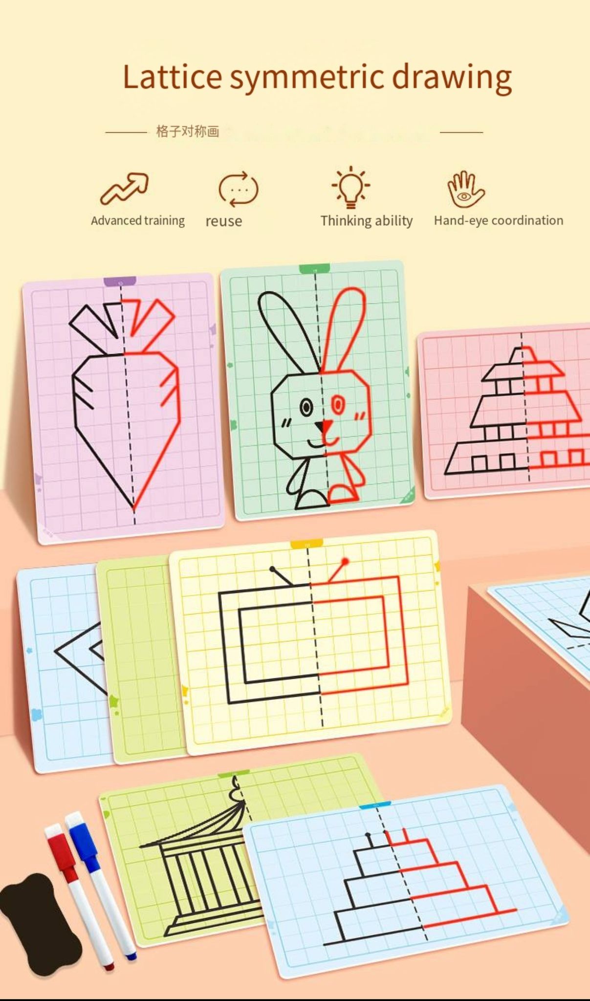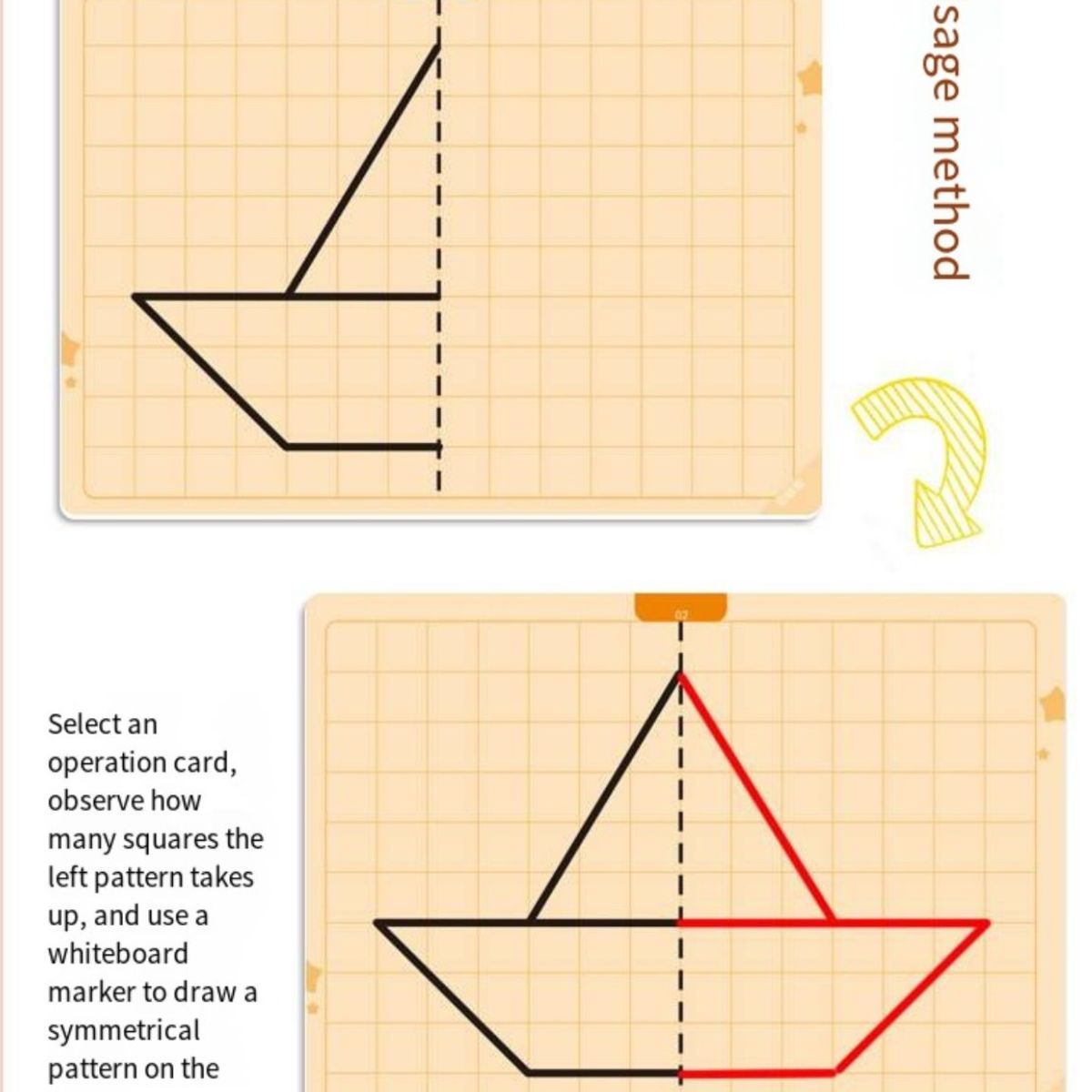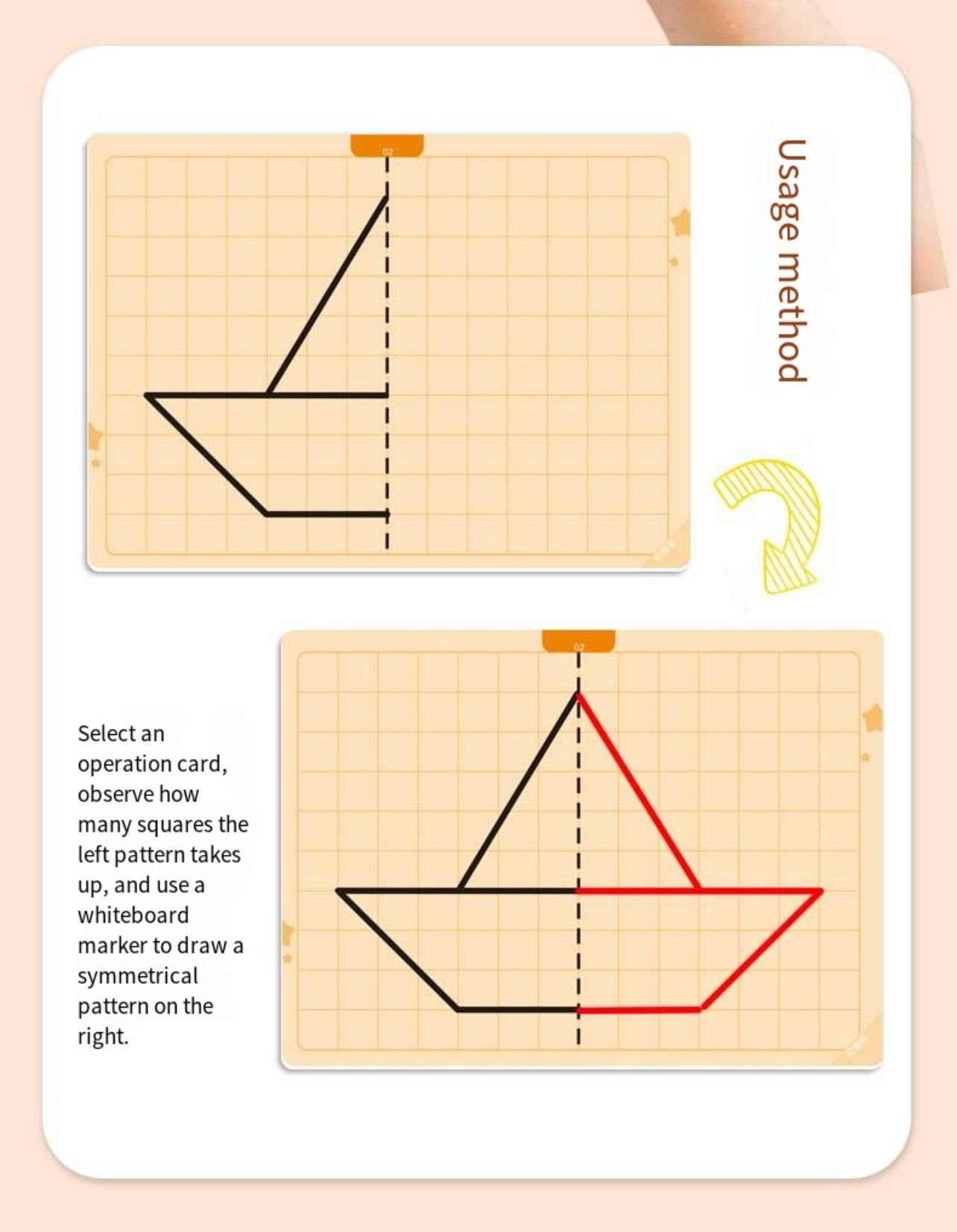 Sümmeetria joonistamise mäng pakub lastele nutikat viisi, kuidas õppida joonistamise kaudu sümmeetria põhimõtteid. Komplektis on 20 taaskasutatavat mustriga kaarti erineva raskusastmega, mis sobivad nii algajatele kui edasijõudnutele. Iga kaart julgustab last looma sümmeetrilist kujundit, arendades seeläbi peenmotoorikat, visuaalset taju ja mõtlemisoskust.